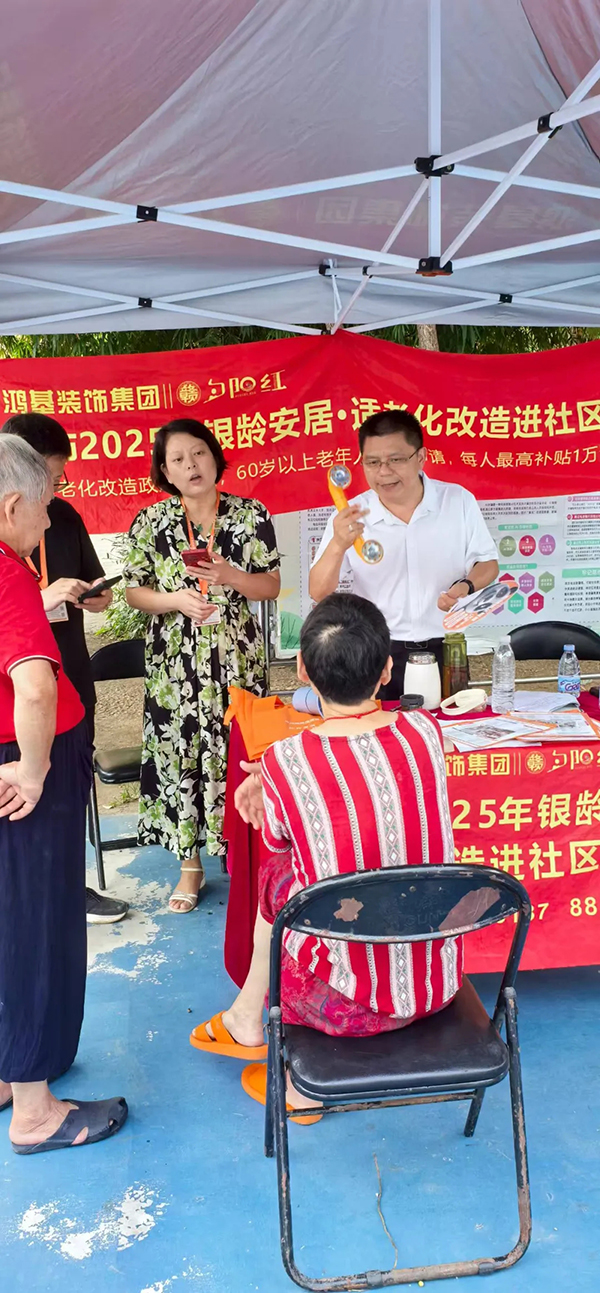 此次活動通過面對面、零距離的溝通方式,讓更多老年人了解適老化改造的重要性與政策福利,更切實解決了老年群體及其家庭的實際困惑,將關(guān)愛落到實處?;顒蝇F(xiàn)場,鴻基裝飾集團董事長胡克偉表示:“后續(xù)集團還將持續(xù)關(guān)注社區(qū)老年群體需求,憑借專業(yè)的設(shè)計與施工能力,為符合條件的家庭提供更優(yōu)質(zhì)的適老化改造服務(wù),讓“養(yǎng)老”變“享老”,為老年居民打造安全、便捷的居家環(huán)境”。