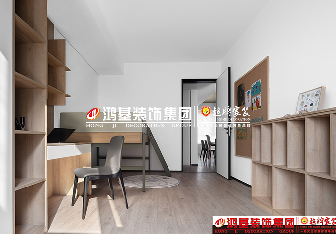 圖7.8亮點:兒童房使用原木色為孩子打造純凈溫馨的房間,與白色的組合,整體清爽自然。提高空間的使用率,給孩子充足的地面玩樂空間,造型簡潔的開放式儲物架很適合擺放在學齡孩子的房間內(nèi),獨特的造型能夠吸引孩子的注意力,讓他們有興趣主動進行收納。創(chuàng)造整潔的空間環(huán)境,既可以加深孩子收納的意識,又給予了他們更多自由嬉戲的空間。